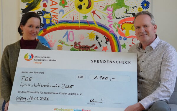 Am 18. Februar 2026 überreichte die TDE Mitteldeutsche Bergbau Service GmbH, vertreten durch unseren Geschäftsführer Herrn Huber, einen Spendenscheck in Höhe von 1.900,00 € an die Elternhilfe für krebskranke Kinder Leipzig e.V..